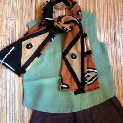 mit Leinenhose und Ethnoschal