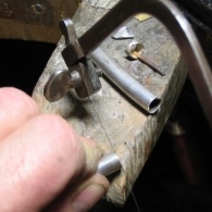 Herstellen eines Silberrohres aus einem Stück Blech, vorbereitendes Rundhämmern des Silberbleches in Röhrenform und in Form ziehen mittels Zieheisen, Ziehzange und Bienenwachs.