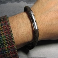 Oxidieren (Schwärzen) einzelner Teilbereiche um optimale Kontrasteffekte zwischen den einzelnen Silberebenen zu erreichen. Polieren und Anpassen der Schmuckröhre auf das Lederarmband. Anbringen von Verschlüssen.