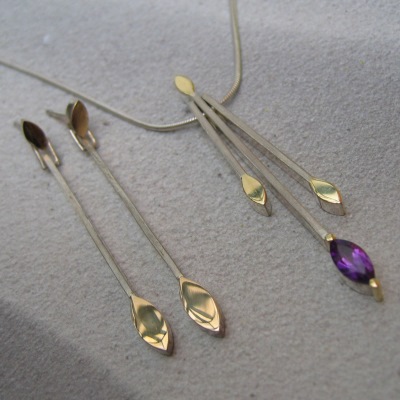 Hals- und Ohrschmuck, Gold/Silber, Amethyst