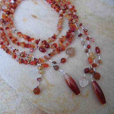 Bodychainkette, 925 Silber, Karneol u.a. Minerale